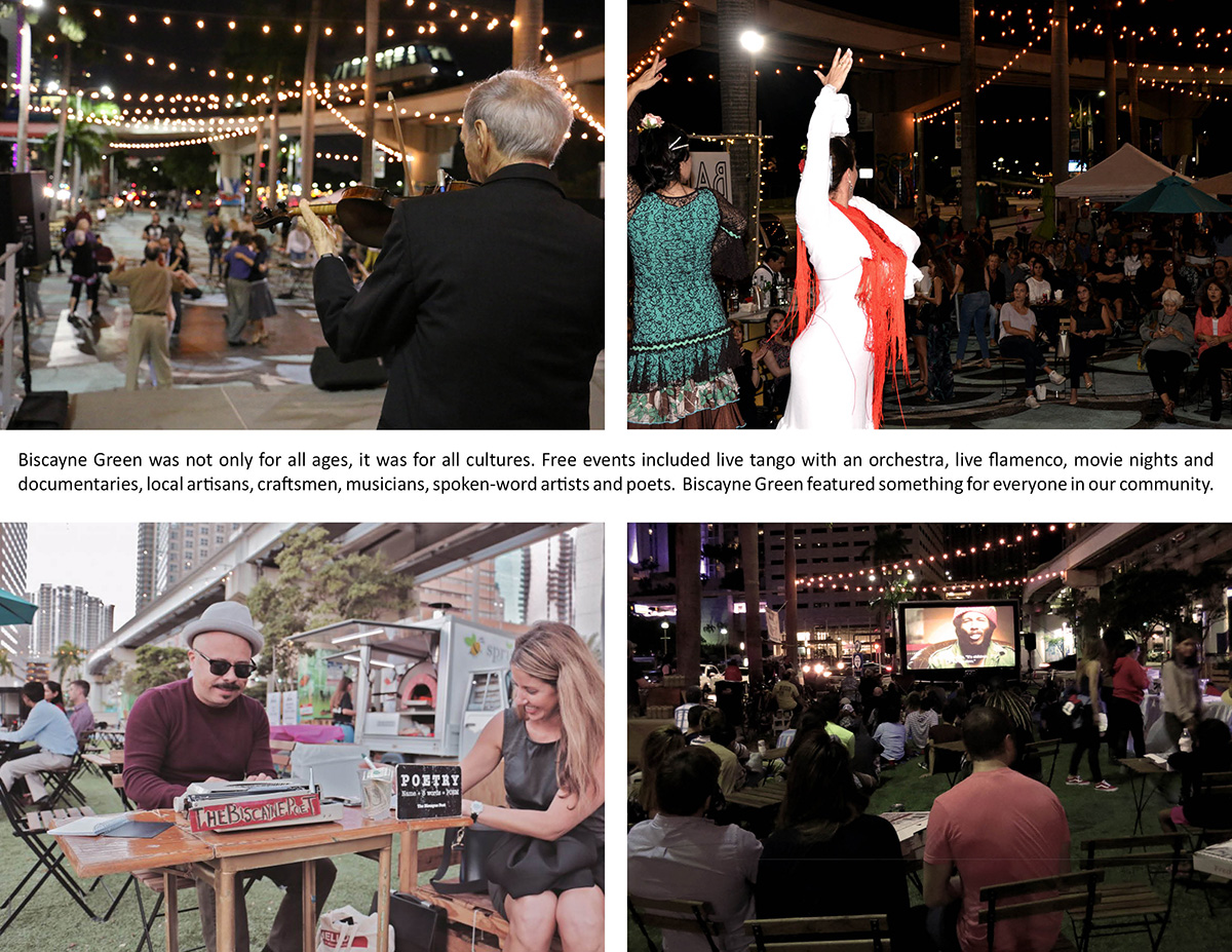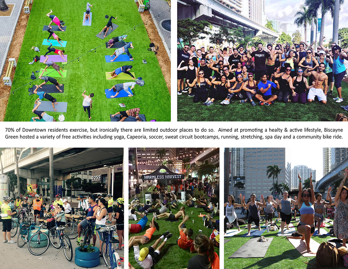 The Biscayne Green One-Month Public Space Intervention was awarded the 2017 International Downtown Association (IDA) Downtown Achievement Award of Excellence and the 2017 Florida American Society of Landscape Architects (FLASLA) Award of Excellence.